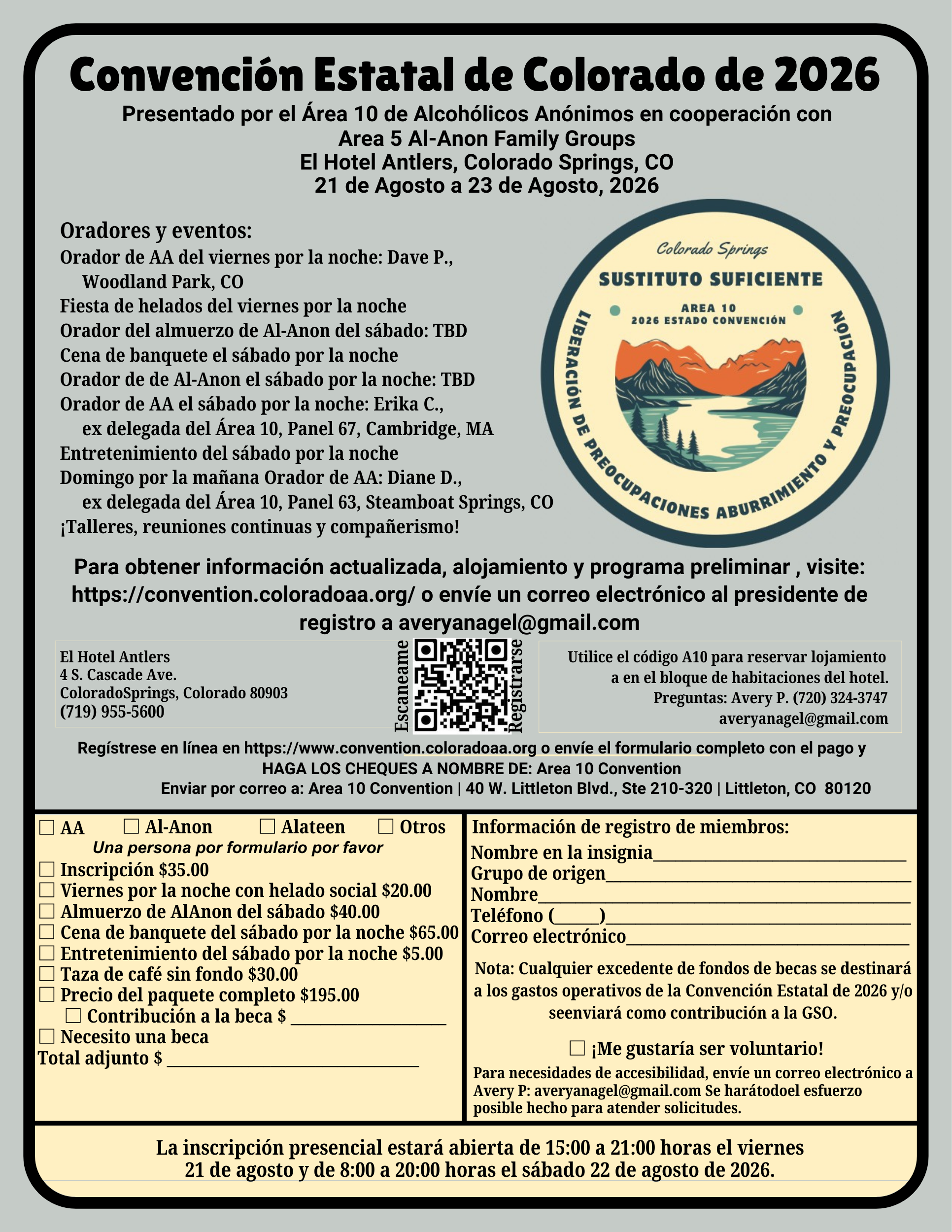 INSCRÍBETE: sitio web de inscripción a la convención: https://convention.coloradoaa.org/